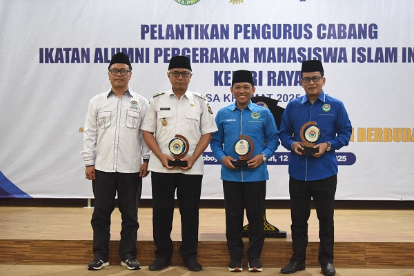 Kediri – Wakil Wali Kota Kediri Qowimuddin menyaksikan pelantikan Pengurus Cabang Ikatan Alumni Pergerakan Mahasiswa Islam Indonesia (IKA PMII) Kediri Raya, Rabu (12/11/2025). Kegiatan pelantikan berlangsung di Ruang Joyoboyo Balai Kota Kediri.