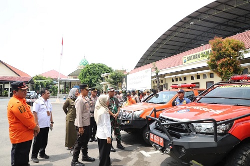 Apel diakhiri dengan pengecekan sarana dan prasarana penanggulangan bencana, memastikan seluruh peralatan siap digunakan dalam situasi darurat, khususnya di wilayah Kabupaten Kediri.