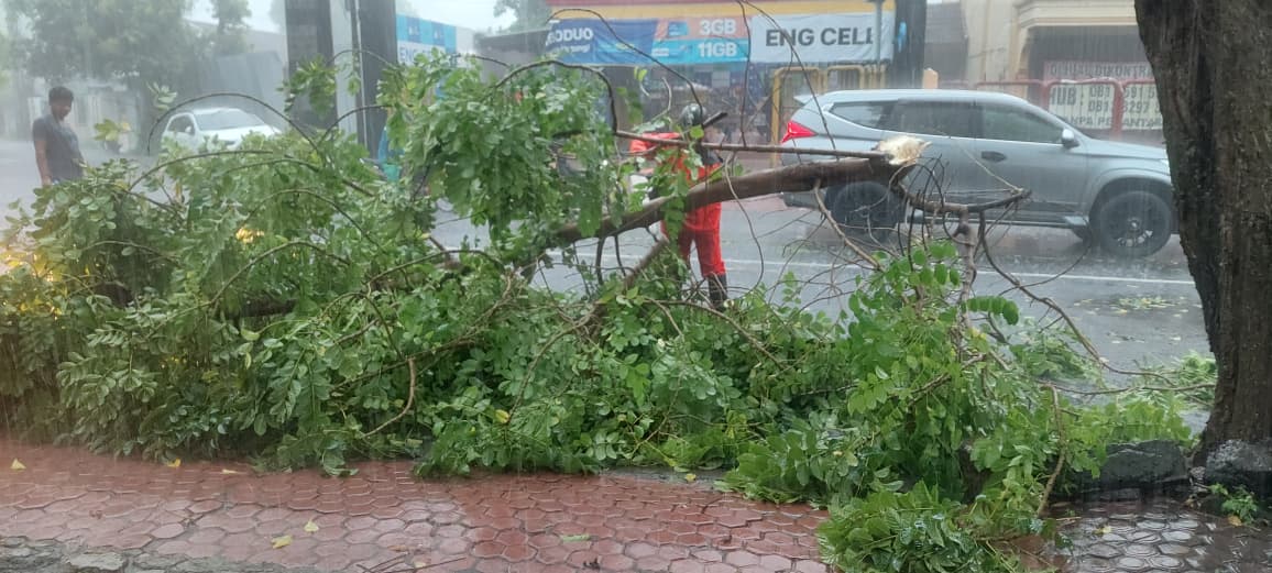 Di Jalan Hayam Wuruk, dahan pohon jenis sepatu dea dengan diameter sekitar 15 sentimeter patah. Sementara di Jalan Letjend MT Haryono, dahan pohon sejenis dengan diameter sekitar 20 sentimeter menutup sebagian akses jalan. Kondisi serupa terjadi di Jalan Super Semar, di mana dahan pohon berdiameter sekitar 25 sentimeter patah, menutup sebagian jalan, menimpa kabel SR hingga terputus, serta menyebabkan satu unit kendaraan pikap mengalami kerusakan ringan.