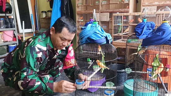 Kediri – Di balik kesibukannya sebagai anggota TNI, Sertu Supriadi (45) memiliki aktivitas lain yang dijalani dengan penuh ketelatenan. Setiap pagi dan sore, Babinsa Kelurahan Tinalan, Kecamatan Pesantren, Kota Kediri ini rutin merawat puluhan ekor burung Kenari Merah Lokal (Merlok) di rumahnya, Desa Doko, Kabupaten Kediri.