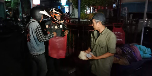 | Biker komunitas R2 membagikan nasi bungkus dan minuman untuk sahur *foto Wahyu |