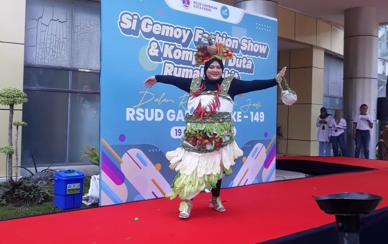 Kediri – Lomba Fashion Si Gemoy dan Duta Rumah Sakit yang berlangsung dalam rangka peringatan Hari Jadi ke-149 RSUD Gambiran Kota Kediri, berlangsung semarak. Kegiatan tersebut menghadirkan beragam kreasi kostum unik yang sesuai dengan tema “Gemayur”, yang mengusung pesan gemar makan sayur. Peserta lomba mengenakan busana dengan aksesori sayur-mayur asli, dengan ketentuan busana yang sopan dan tidak terbuka.