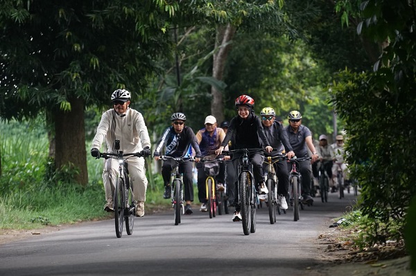 Kediri – Wali Kota Kediri Vinanda Prameswati bersama Wali Kota Madiun Maidi melaksanakan kegiatan bersepeda menyusuri sejumlah ruas Kota Kediri. Kegiatan gowes ini menjadi simbol kebersamaan sekaligus komitmen memperkuat kolaborasi antar daerah. Rute gowes diawali dari Balai Kota Kediri dan diakhiri di kawasan Sumber Jiput.