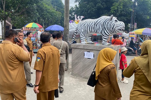 Kediri – Satuan Polisi Pamong Praja (Satpol PP) Kabupaten Kediri bersama sejumlah organisasi perangkat daerah (OPD) terkait mendatangi kawasan patung macan putih viral di Desa Balongjeruk, Kecamatan Kunjang, pada Senin (5/1). Kunjungan tersebut dilakukan untuk memantau kondisi ketenteraman dan ketertiban seiring meningkatnya jumlah pengunjung di pertigaan macan putih tersebut.