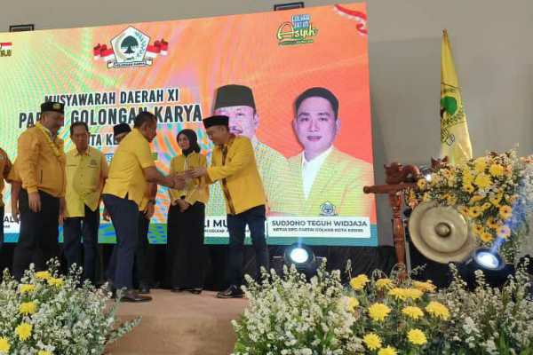 Kediri – Musyawarah Daerah (Musda) Ke-XI Partai Golkar Kota Kediri resmi menetapkan Sudjono Teguh Widjaja sebagai Ketua DPD Partai Golkar Kota Kediri periode 2025-2030. Dalam forum yang digelar di Hall Hotel Insumo, Jumat (26/9), Sudjono terpilih secara aklamasi setelah menjadi satu-satunya calon yang mendaftar.
