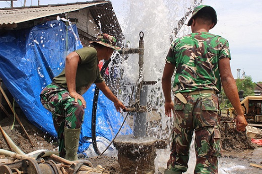 Kediri — Sumur bor yang dibangun melalui program TNI Manunggal Membangun Desa (TMMD) di Dusun Templek, Kabupaten Kediri, kini mulai mengeluarkan air bersih setelah proses pengeboran mencapai kedalaman sekitar 100 meter, Senin (2/3/2026).
