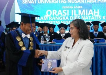 Kediri - Pj Wali Kota Kediri Zanariah memberikan orasi ilmiah dalam rangka Dies Natalis ke-48 Universitas Nusantara PGRI Kediri, yang ...