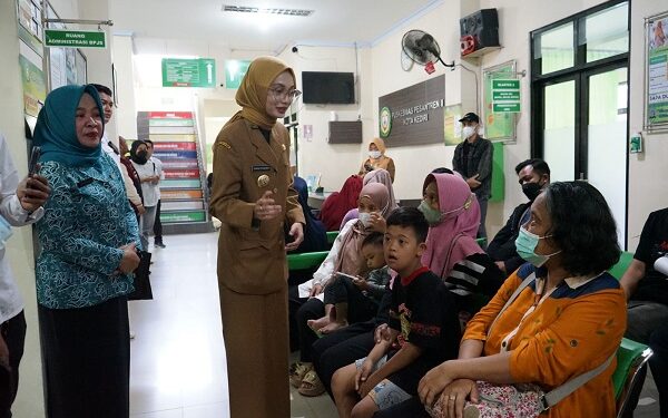 Kediri – Wali Kota Kediri Vinanda Prameswati meninjau pelayanan kesehatan yang ada di Puskesmas Pesantren 2, Senin (16/6/2025). Didampingi Kepala Puskesmas Pesantren 2 Dwi Nugerahini, satu per satu ruangan yang ada di Puskesmas ditinjau untuk memastikan layanan dan fasilitas kesehatan berjalan dengan baik.